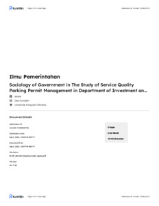 The aims of this study is to find out, analyzing the Sociology Of Government In The Study Of Service Quality Parking Permit Management In Department Of Investment And One Door Integrated Services Of Bandung City Through The Gampil For Public Application. This study used a descriptive method with a qualitative approach where this data is collected by observation, interviews and recording using descriptive methods with a qualitative approach. The technique to determining the informant in this study is used purposive techniques. The resuIts of the study show that service quality of parking permit management through the gampil for public application is not yet effective, this can be seen in the tangible dimension or physical evidence that there is a deficiency in information to the public about the licensing flow. Reliability or deficiency capabilities in applications that often experience problems when entering the queue for the application of the Gampil for Public Application. Responsiveness, there are deficiencies in the findings of more than 7 days of service and not in accordance with those determined by the standard operating procedures. Assurance in providing guarantees has been effectively seen from the apparatus providing guarantees in service to the community. Empathy in the service of the community has been effectively carried out from the ability of the apparatus in serving and respecting every community related to the Gampil for Public application service. The quality of Parking Permit Management service by the community through the Gampil for Public application is not optimal enough. With this research, we hope that the fulfillment of public services can provide optimal satisfaction to the community.