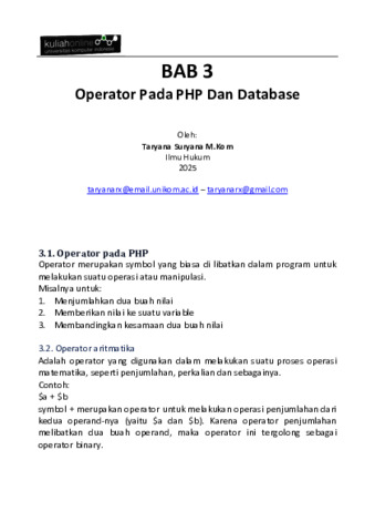 Suryana, Taryana (2025) Materi 3 Operator Dalam Php Dan Database. [Teaching Resource]
